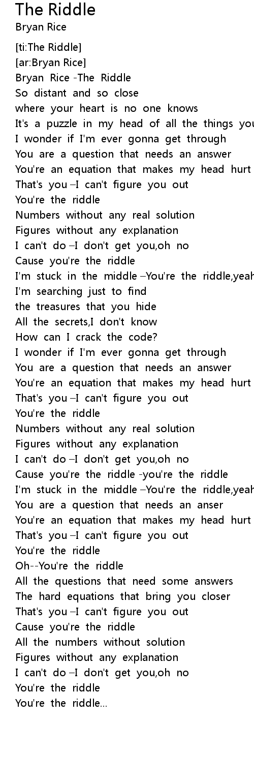 | [01:57.882] | Cause you' re the riddle you' re the riddle |