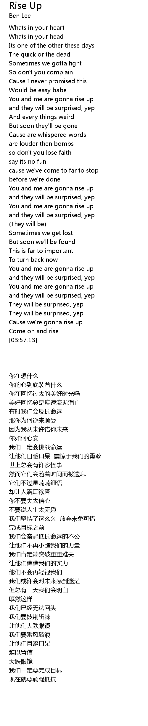You and me are gonna rise up |