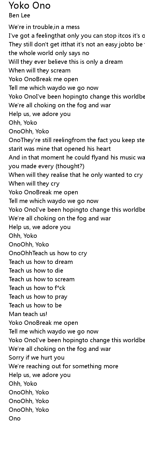 Yoko OnoI've been hopingto change this worldbefore it's over |