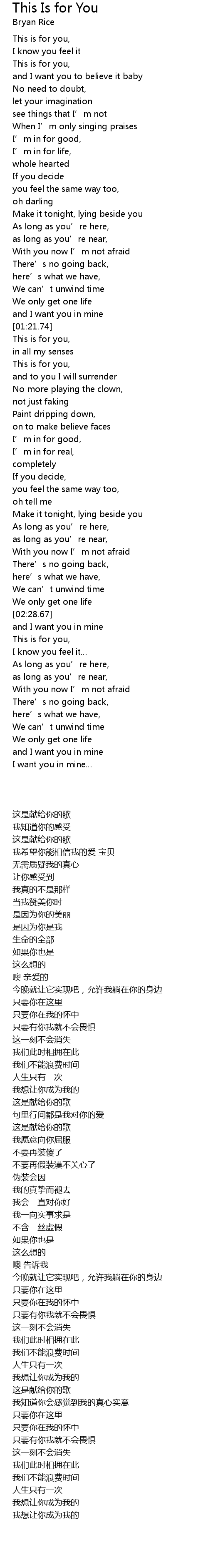 | [00:20.64] | This is for you, |