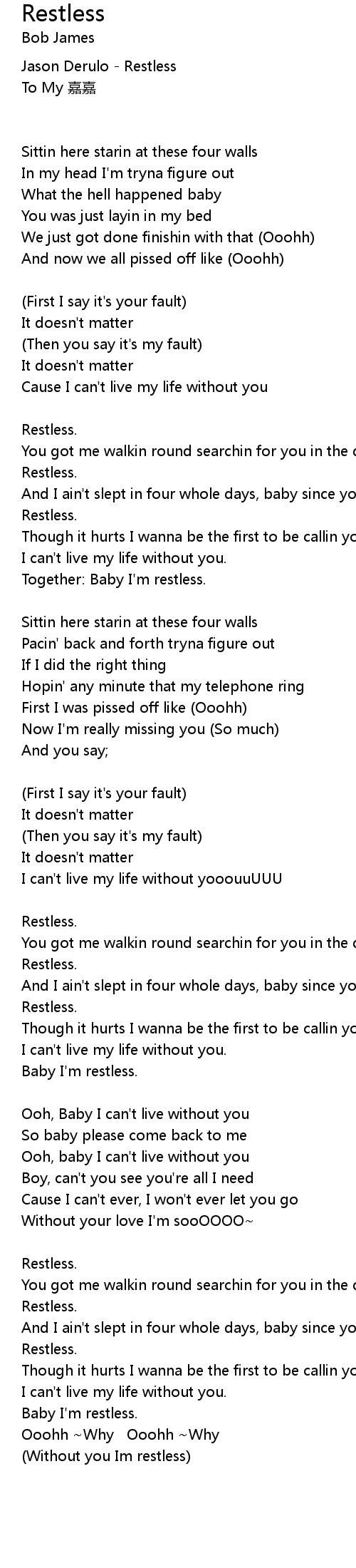 | You got me walkin round searchin for you in the daytime with a flashlight | |