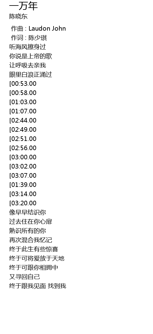 | [03:48.00][02:44.00][01:14.00] | cong tian bian fei wan nian |