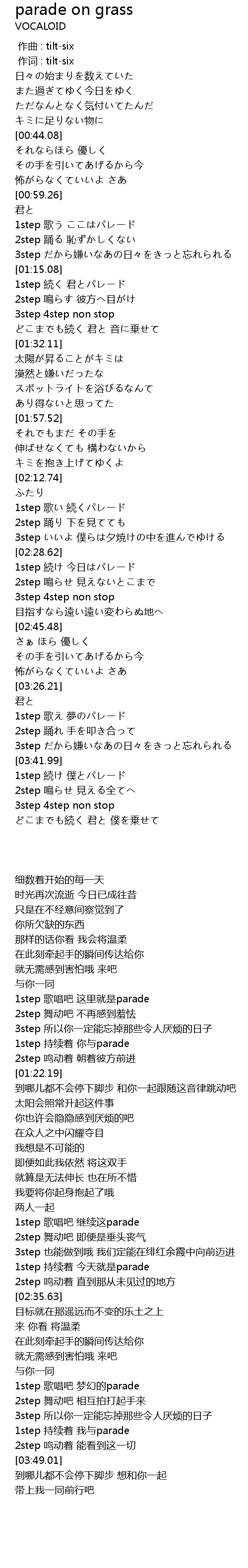 | [03:42.12] | 1step 続け 僕とパレード |