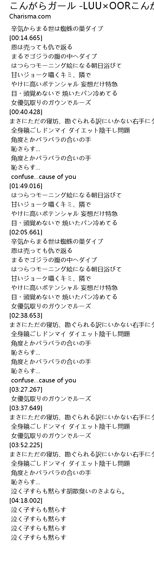 | [02:06.365] | 辛気からまる世は蜘蛛の巣ダイブ |