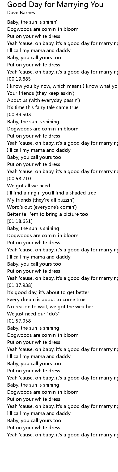 Yeah 'cause, oh baby, it's a good day for marrying you |