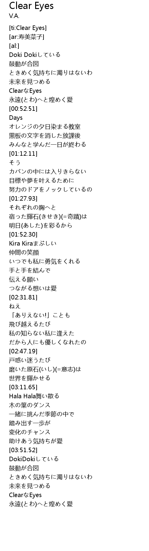 | [04:29.19] | ClearなEyes |