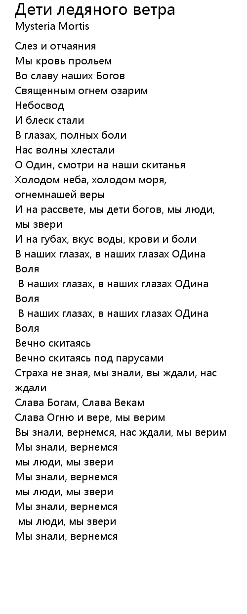 Дети ледяного ветра  Lyrics