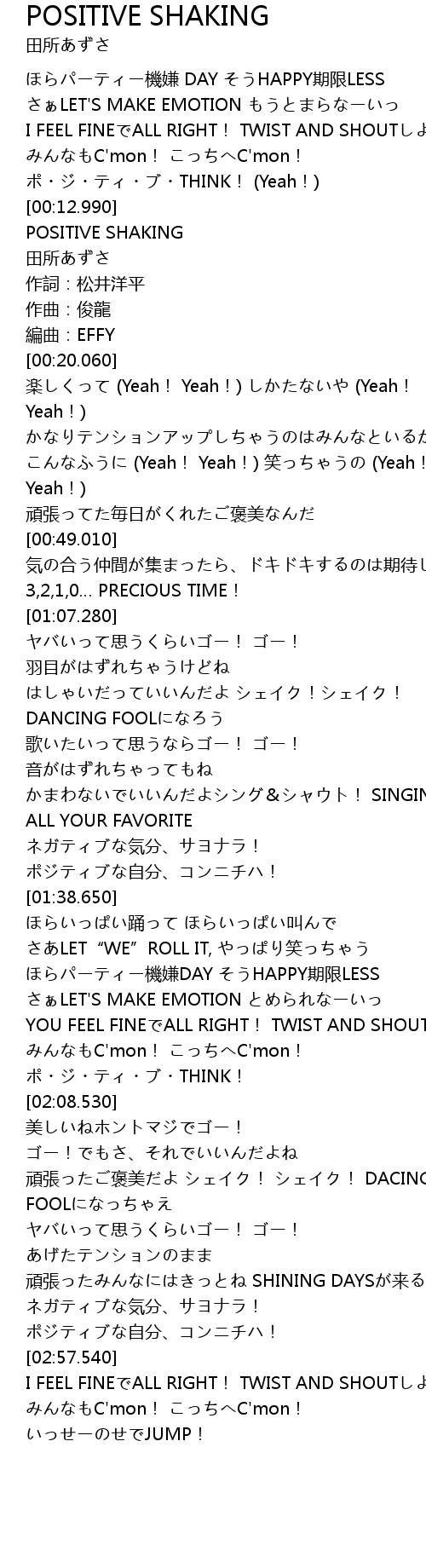 | [02:02.730] | YOU FEEL FINEでALL RIGHT! TWIST AND SHOUTしないと! |