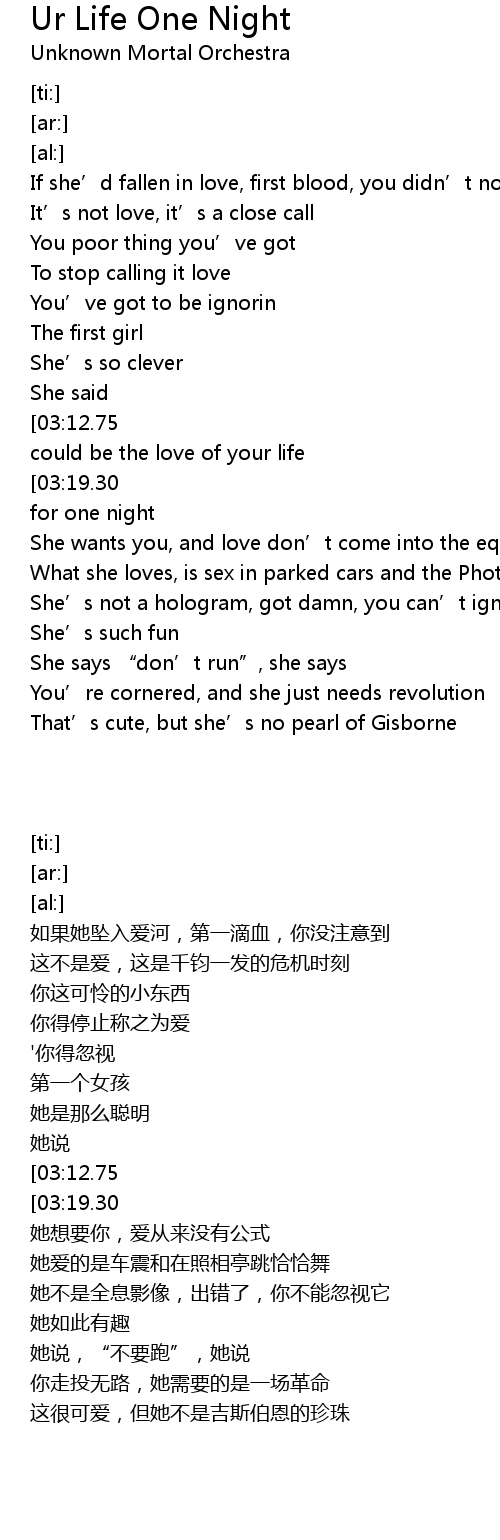 | Song | Ur Life One Night |