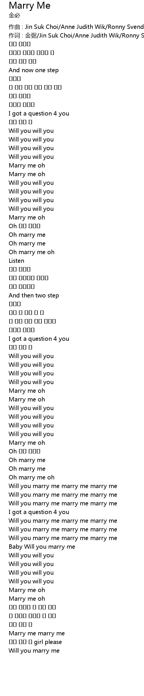 | 作词 : 金弼/Jin Suk Choi/Anne Judith Wik/Ronny Svendsen/Nermin Harambasic | |