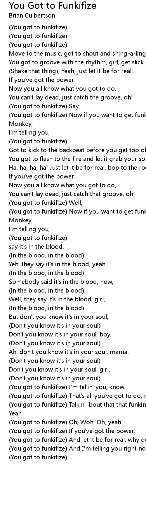 (You got to funkifize) Talkin' 'bout that that funkiness, yeah, yeah, |