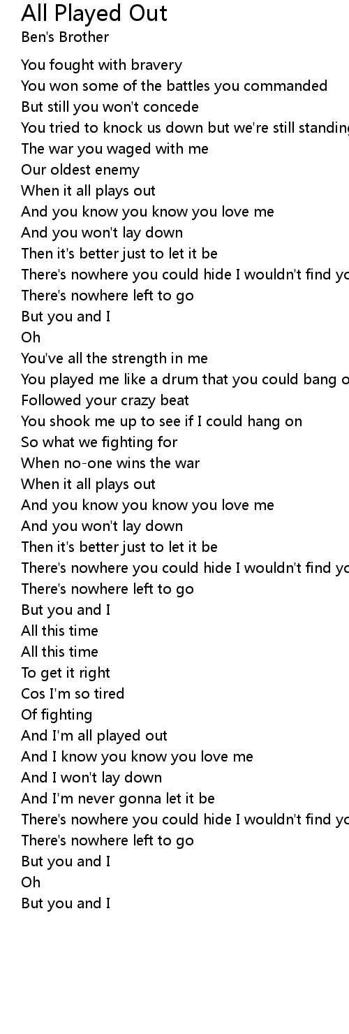 And I'm all played out |