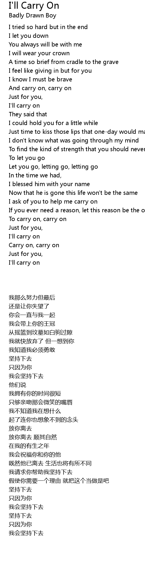 Carry on, carry on |
