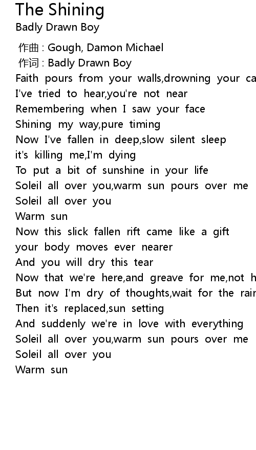 | [00:01.00] | zuò cí : Badly Drawn Boy |