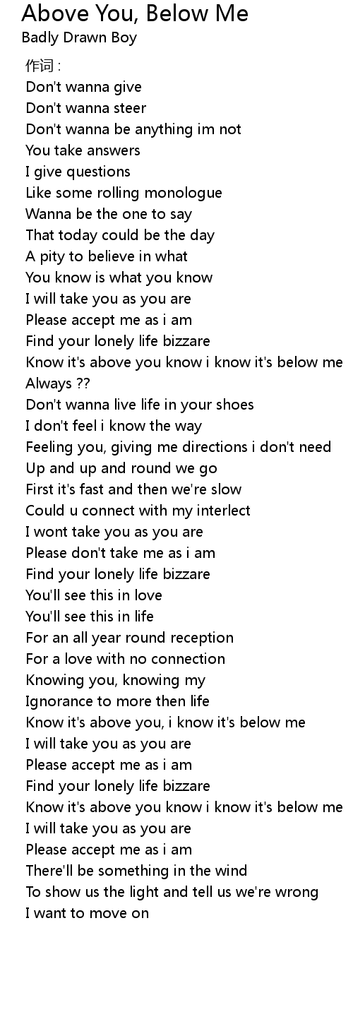 | [00:42.83] | Know it's above you know i know it's below me |