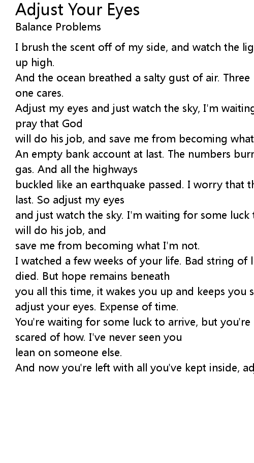 Adjust my eyes and just watch the sky, I'm waiting for some luck to arrive. And pray that God |