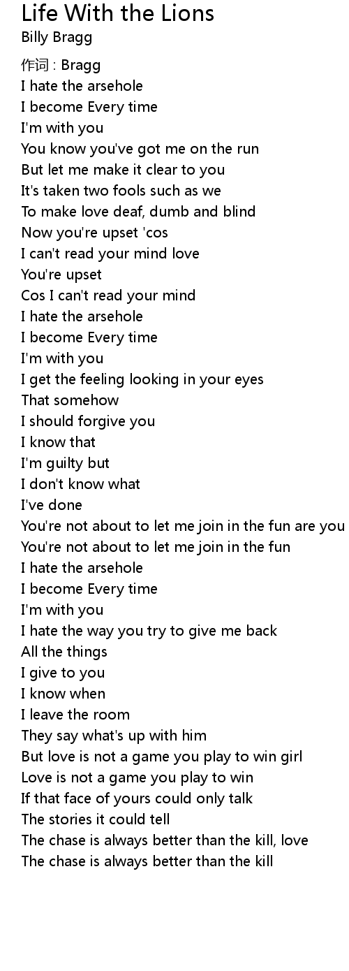 | Song | Life With the Lions |