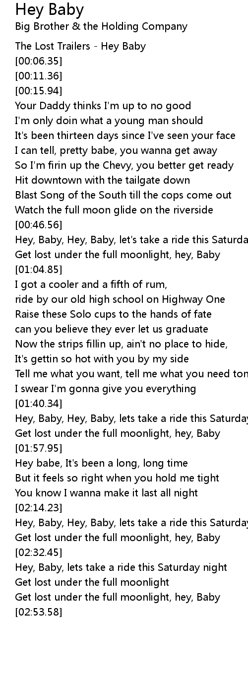 Hey, Baby, Hey, Baby, lets take a ride this Saturday night |