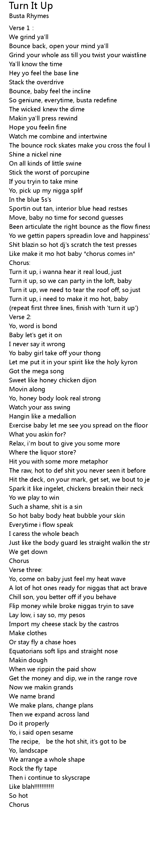 | (repeat first three lines, finish with 'turn it up') | |