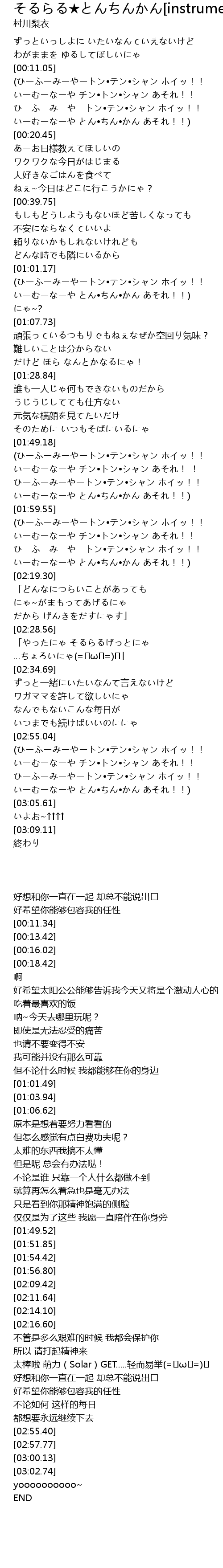 | [01:44.58] | そのために いつもそばにいるにゃ |