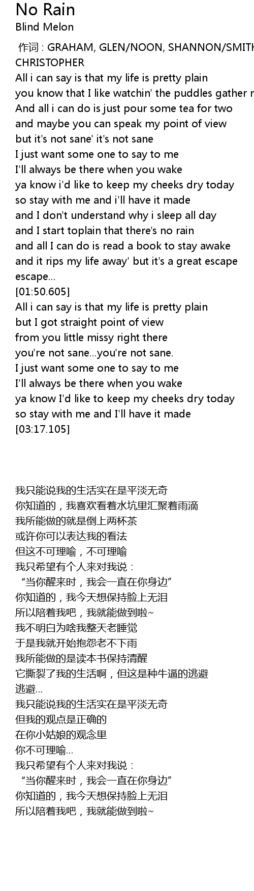 | Song | No Rain |