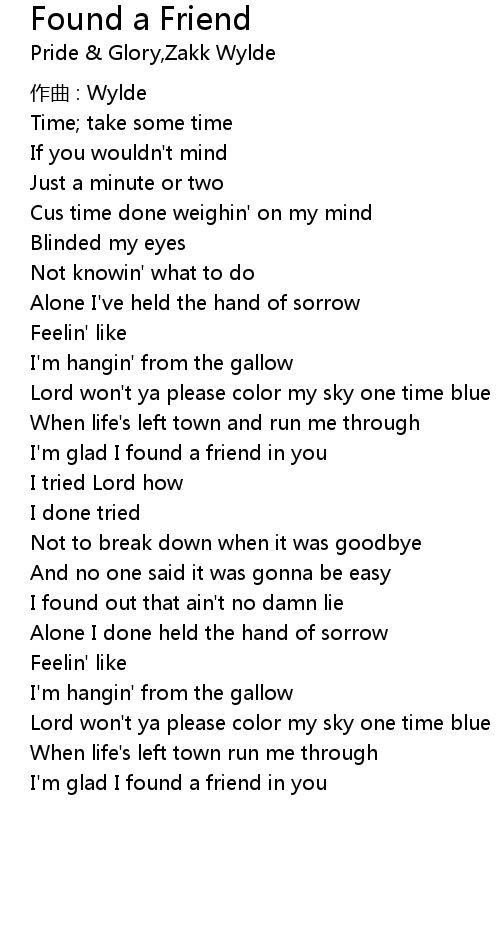 | I' m glad I found a friend in you | |