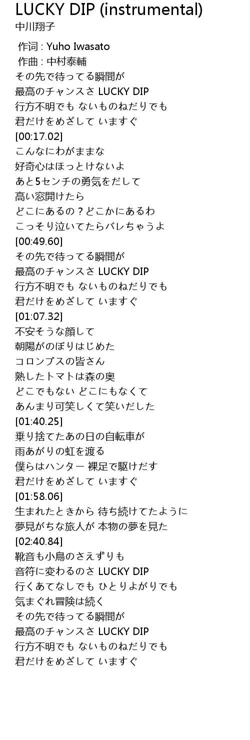 | [03:01.77] | 最高のチャンスさ LUCKY DIP |