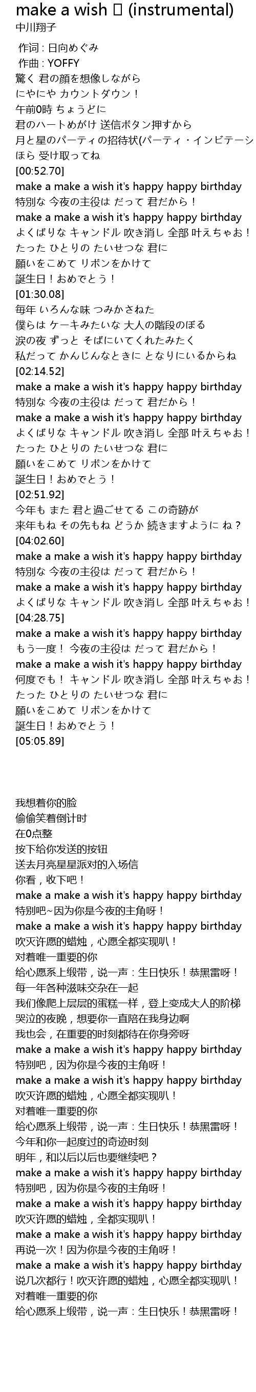| [04:06.33] | make a make a wish it's happy happy birthday |