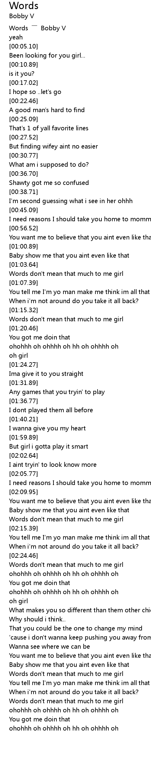 | [00:01.16] | Words Bobby V |