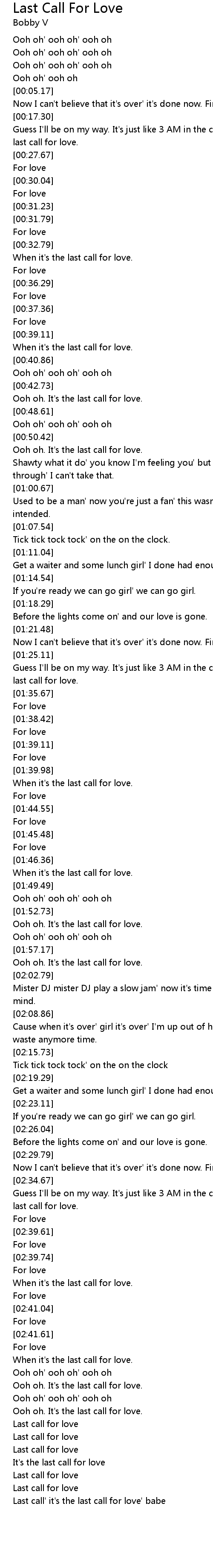 Ooh oh. It's the last call for love. |