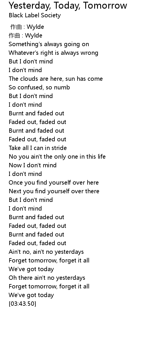 | [03:19.81] | Oh there ain' t no yesterdays |