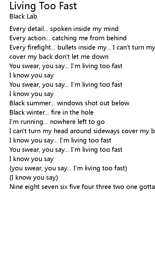 You swear, you say... I'm living too fast |