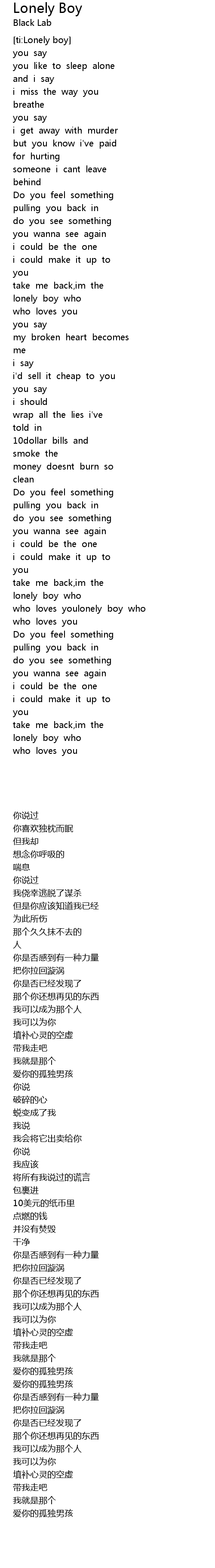 | [02:17.941] | who loves youlonely boy who |