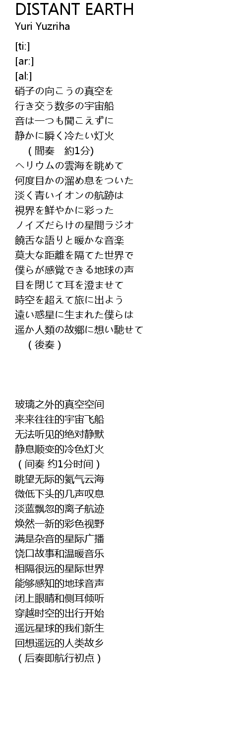 | [04:17.35] | 遥か人類の故郷に想い馳せて |