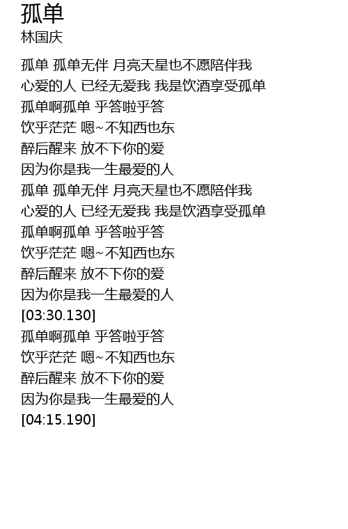 | [03:31.400] | 孤单啊孤单 乎答啦乎答 |