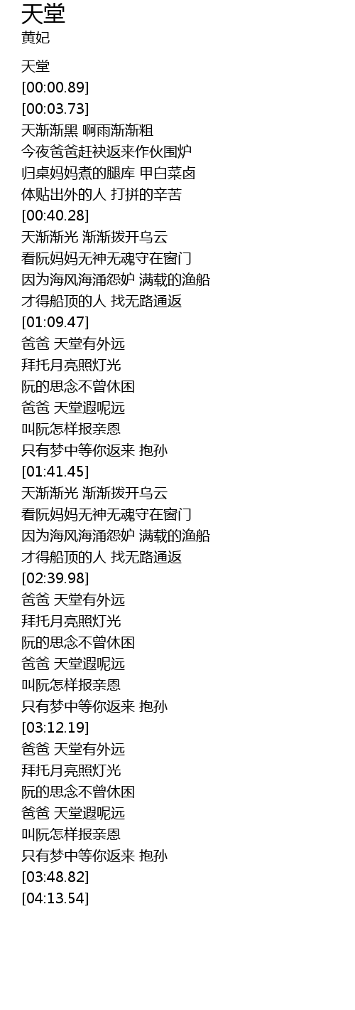 | [01:24.91] | 爸爸 天堂遐呢远 |