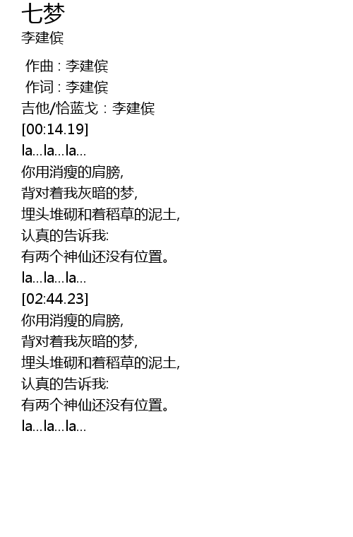 | [00:09.73] | ji ta qia lan ge: li jian bin |