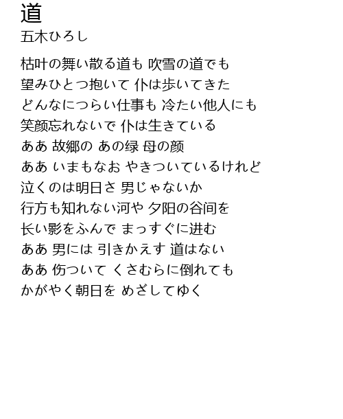 | 枯叶の舞い散る道も 吹雪の道でも | |