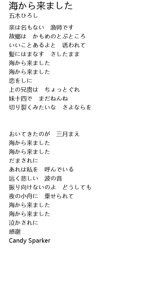 海から来ました |