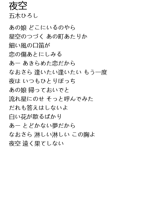 | Song | 夜空 |