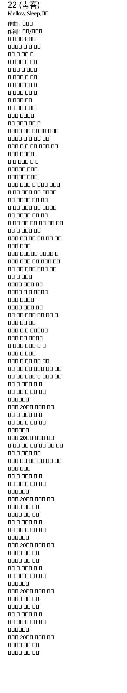 22 qing chun Lyrics