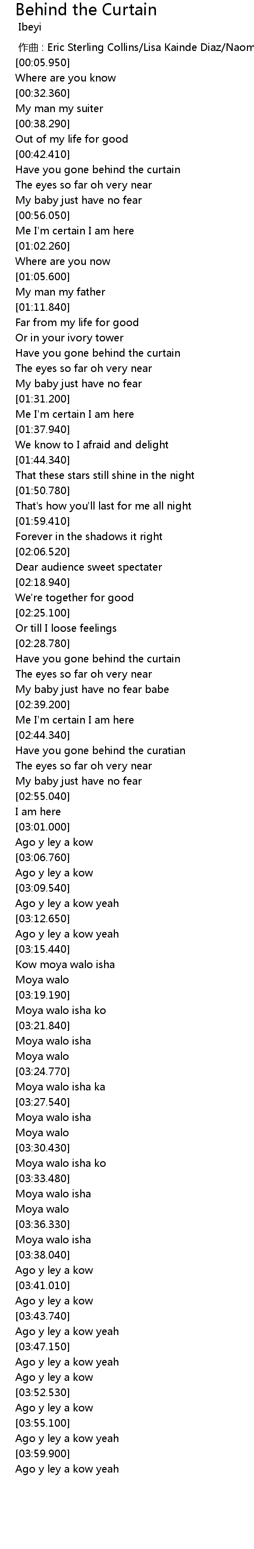 | [00:00.00] | 作曲 : Eric Sterling Collins/Lisa Kainde Diaz/Naomi Diaz |