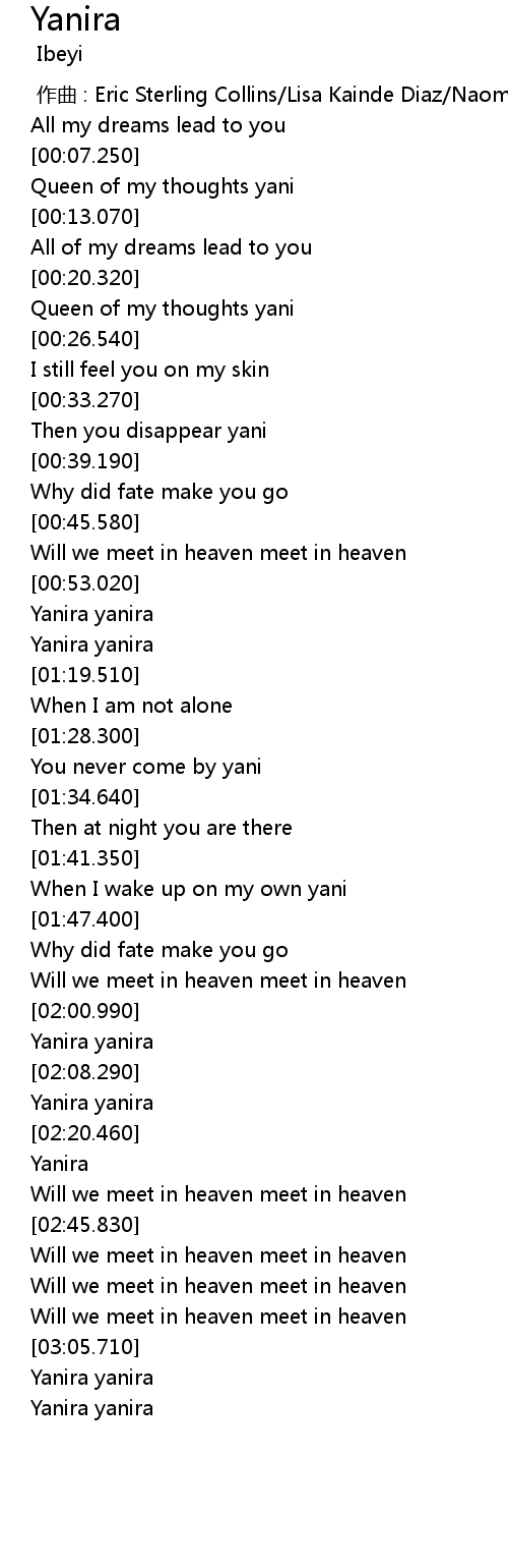 | [02:46.370] | Will we meet in heaven meet in heaven |
