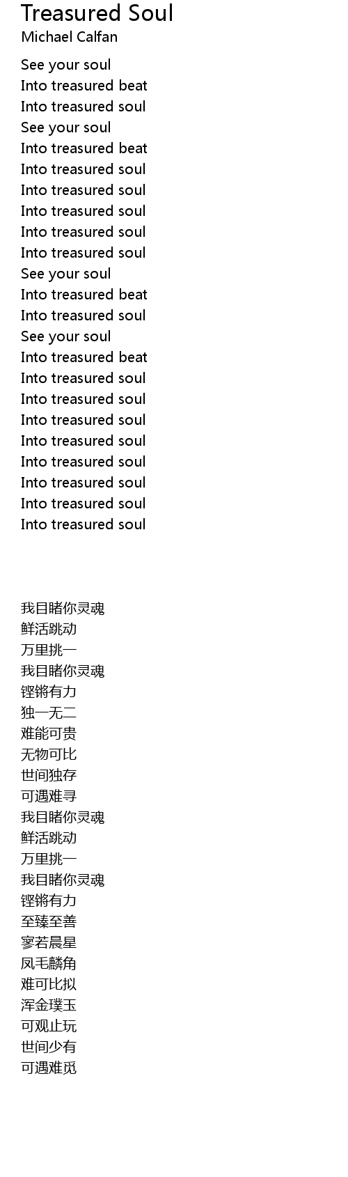 Into treasured soul |