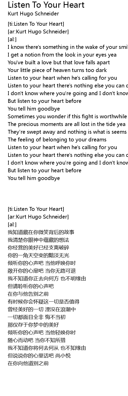 [ti:Listen To Your Heart] |