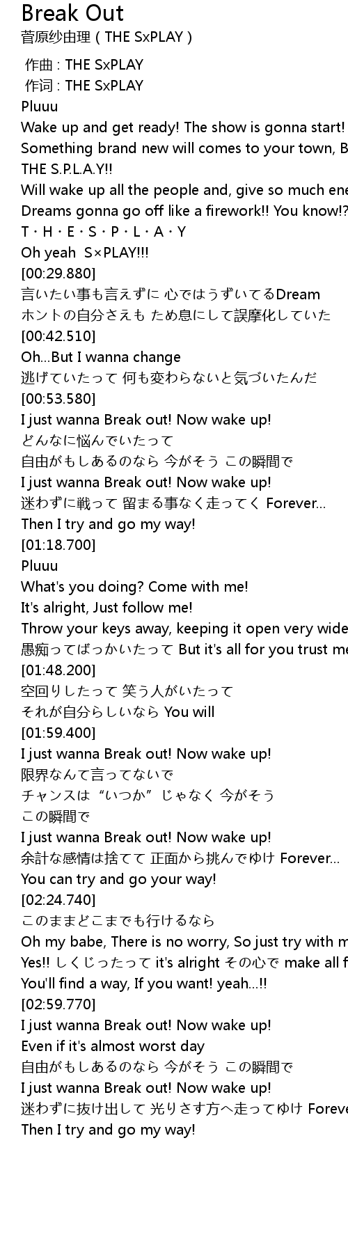 | [02:59.980] | I just wanna Break out! Now wake up! |