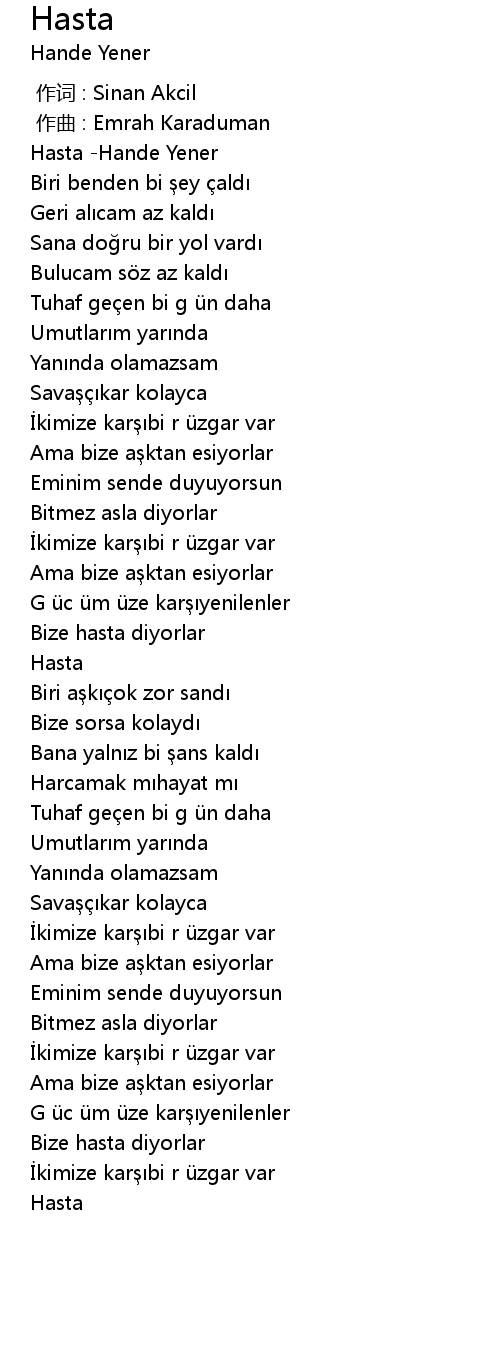 | [00:00.191] | Hasta Hande Yener |