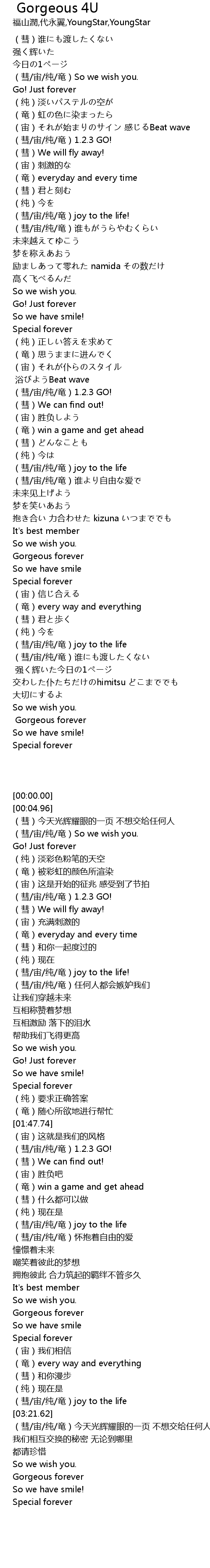 | [00:56.59] | (彗/宙/纯/竜)谁もがうらやむくらい |