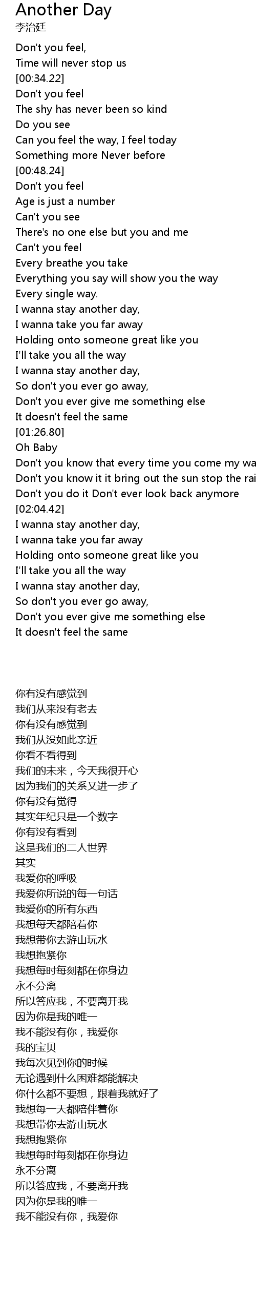 | [02:23.74] | I wanna stay another day, |
