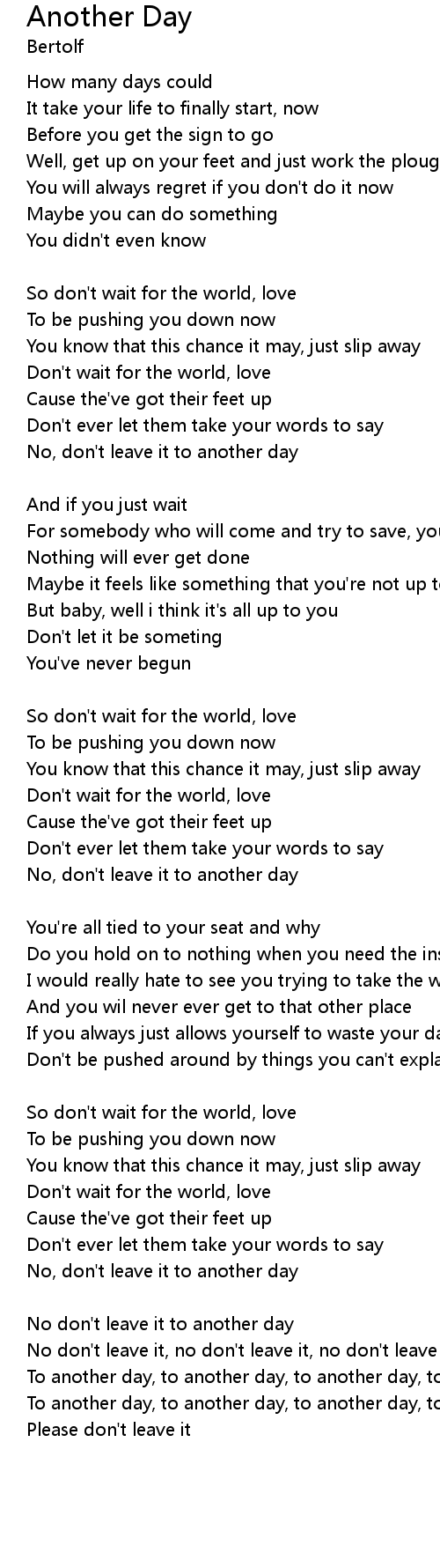| No don't leave it, no don't leave it, no don't leave it to another day | |